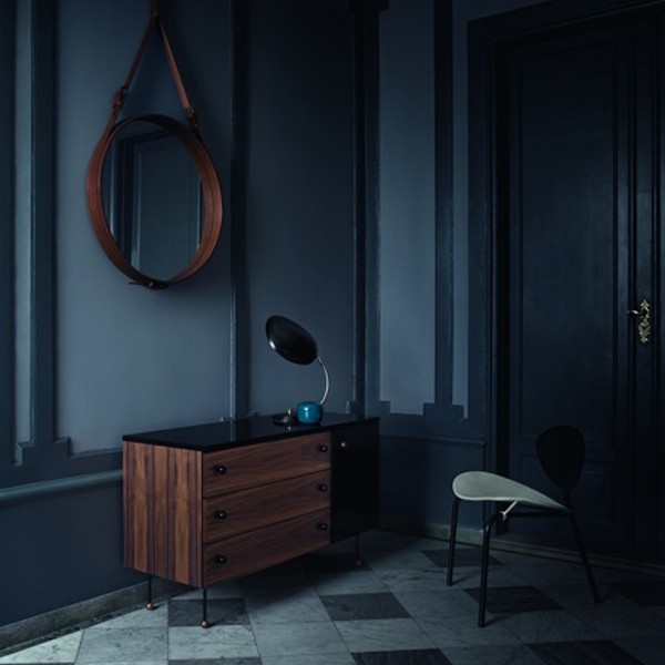 Это переиздание знаменитой коллекции дизайнера Jaques Adnet, выпущенной в 50-е годы XX века. Этот дизайнер – икона французского модернизма один из первых придумал производить мебель и предметы интерьера из чего-угодно, кроме дерева. Отсюда кожа, в которую обрамлено зеркало и ремни, на которых оно подвешено. Оригинальная модель зеркал украшала французский модный дом Hermes. Зеркало выпущено в трех размерах: Adnet S, Admet M и Adnet L. В двух цветах: черном и коричневом.