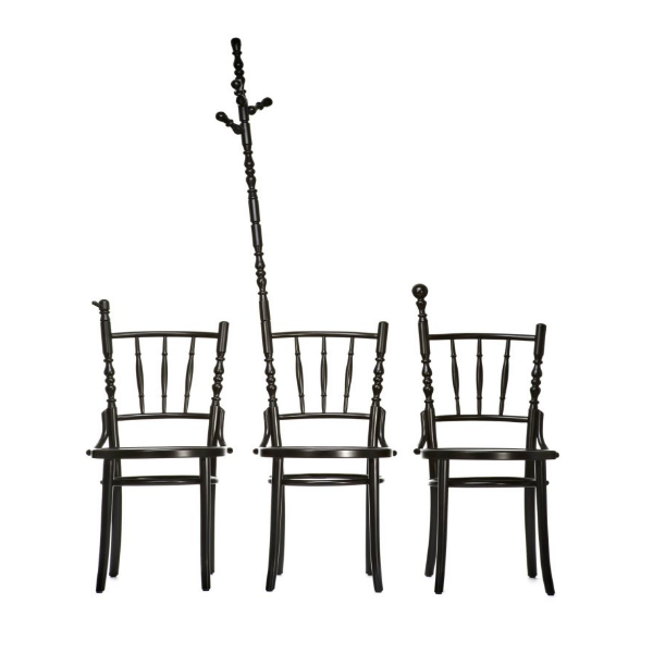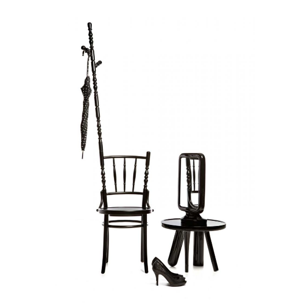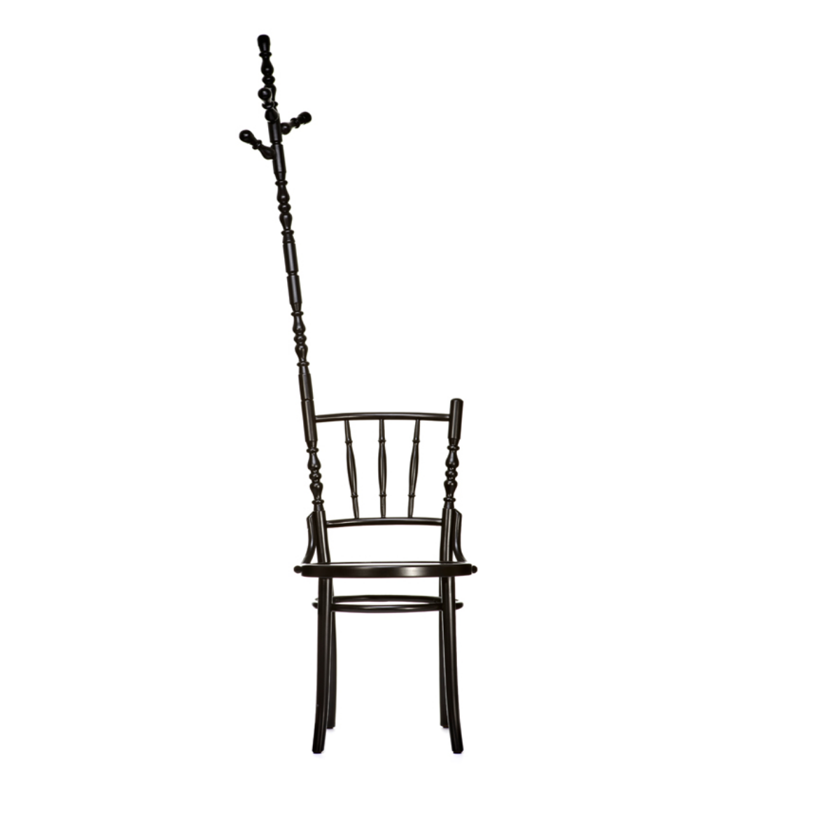Extension Chair создан для голландского бренда MOOOI дизайнером Sjoerd Vroonland. Дизайнер решил создать удобный предмет интерьера для тех, кто любит использовать стул в качестве вешалки. Стул, выполненный из массива бука сконструирован с учетом нагрузок, которые должна выдерживать вешалка. Перевернуться ему не дает утяжеление в сидении. Extension chair всегда укомплектован вешалкой для сумок и может быть дополнен по Вашему желанию держателем для писем и вешалкой для пальто.