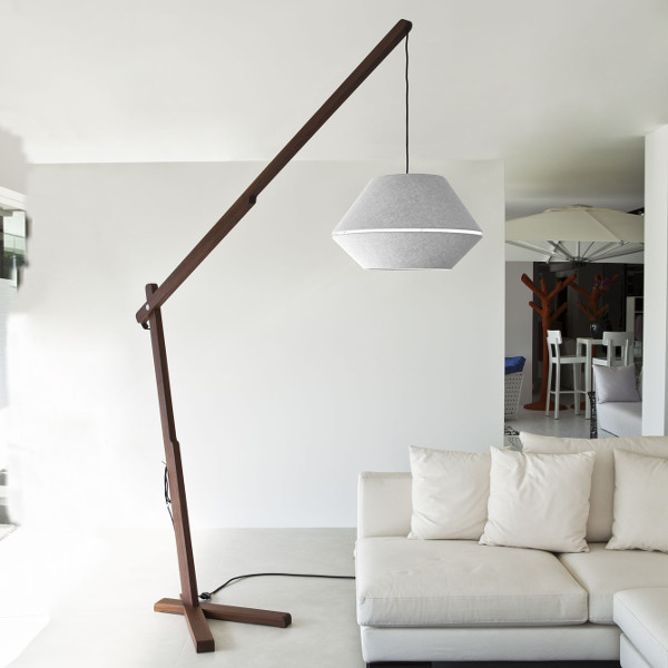 Современный напольный светильник Oops от Contardi играет с равновесием и приковывает внимание. Сделанный из древесины грецкого ореха, этот светильник, благодаря своим размерам способен стать источником основного света в небольшом помещении. Благородный ореховый цвет конструкции в сочетании с тканевым плафоном натурального белого цвета украсит любой интерьер.