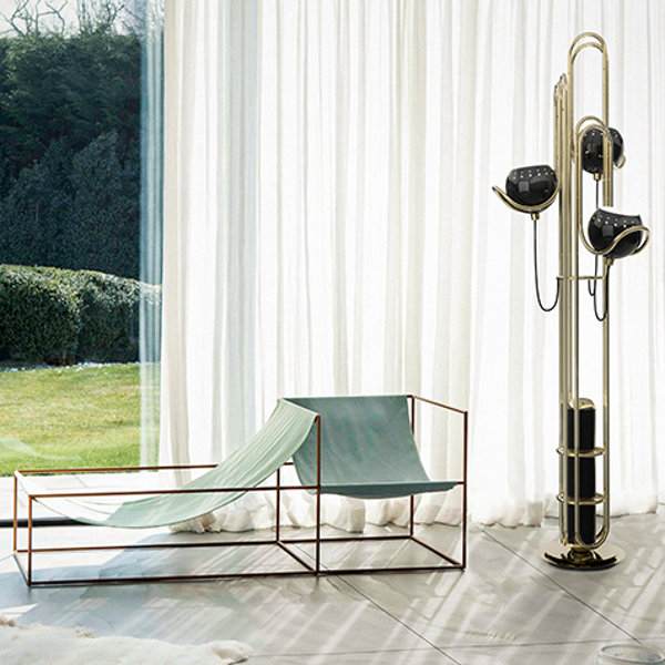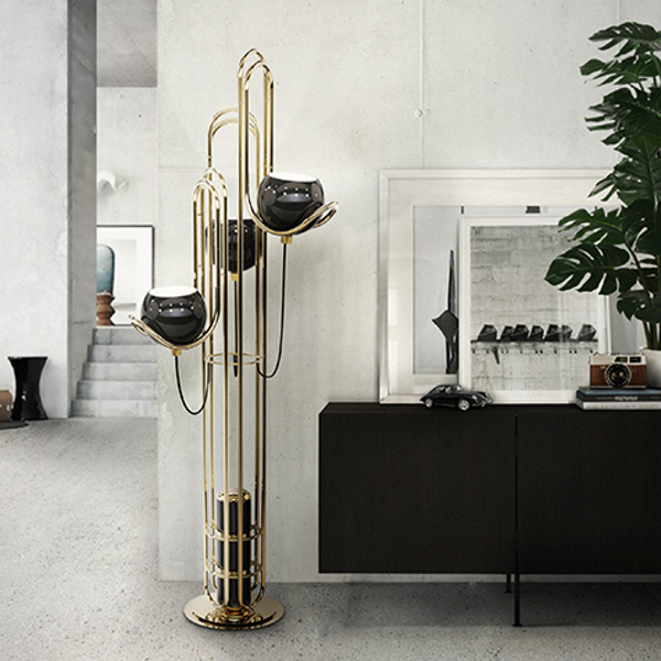 Светильник Neil от Delightfull создан с мыслью о золотой эре освоения космоса в 60-е годы. У Neil имеется три плеча, на которых располагаются регулируемые сферы-плафоны. Торшер обеспечивает хорошее яркое освещение, в том числе периферийное. Особая элегантность дизайна достигается специальной конструкцией, в центре которой находится туба, окруженная латунной арматурой. Это же придает легкость в целом эклектичному дизайну Neil, объединяющему в себе черты модерна и ретро-футуризма.
