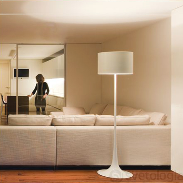 Напольный светильник из металла работы дизайнера Sebastian Wrong (Себастиан Ронг), созданный в 2003 году. Глянцевые бесшовные поверхности ножки, плавно перетекающей в основание, и плафона, а также плавные формы светильника подтверждают название «Spun». Верхняя часть плафона закрыта стеклянным экраном, который защищает от прямого света. Интенсивность света регулируется при помощи диммера, размещенного на проводе питания. Коллекция включает торшеры и настольные светильники белого, серого и черного цветов.