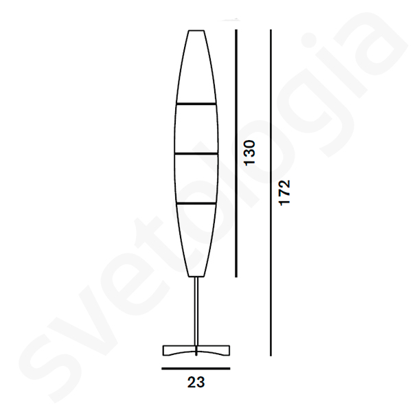 • Габаритные размерыд. 23 / ш. 23 / в. 172 / д. плафона 130 см.