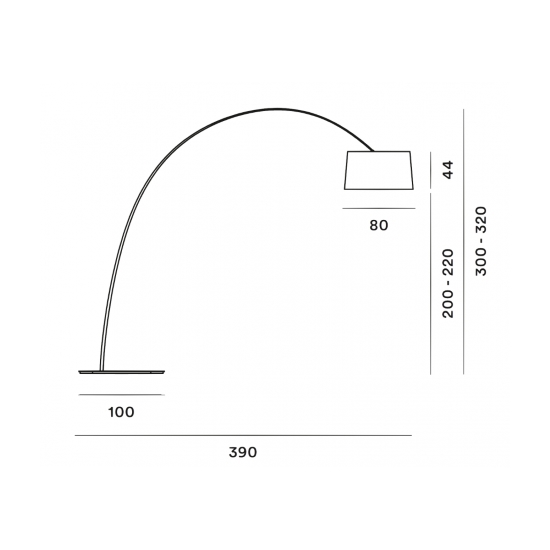 • Габаритные размерыд. 390 / в. Max. 315 / Ø плафона 80 / Ø основания 100 см.