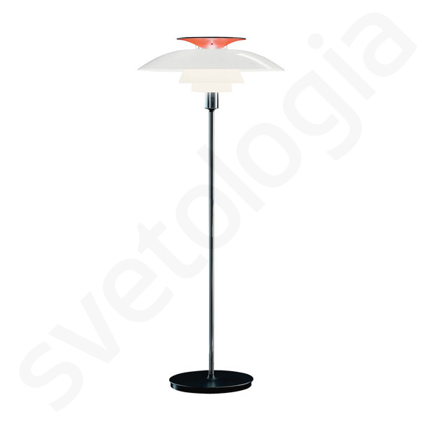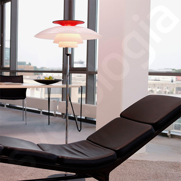 Напольный светильник PH 80 от Louis Poulsen обеспечивает приятный, рассеянный свет, в основном направленный вниз. Уникальная конструкция позволяет свету, выходящему из источника перераспределяться между рассеивателями и мы получаем мягкий рассеянный, но в то же время достаточно интенсивный свет. PH 80 был создан так, чтобы искусно замаскировать источник света и обеспечить амбиентное освещение. Из всей коллекции этот светильник выделяется красной акриловой пластиной, венчающей конструкцию.