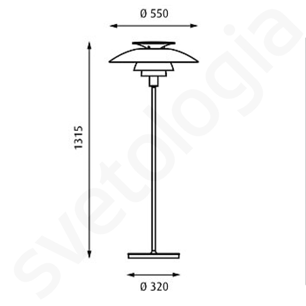 - Габаритные размерыв. 131.5 / Ø плафона 55 / Ø основания 32 см.
