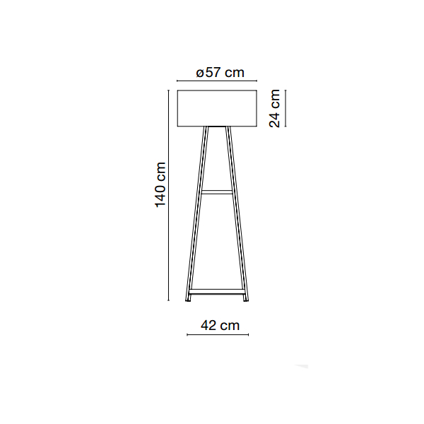 - Габаритные размерыв. 140 / Ø плафона 57 / д. основания 42 / ш. основания 42 см.