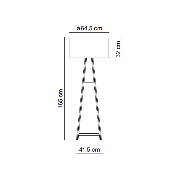 - Габаритные размерыв. 165 / Ø плафона 64.5 / д. основания 41.5 / ш. основания 41.5 см.