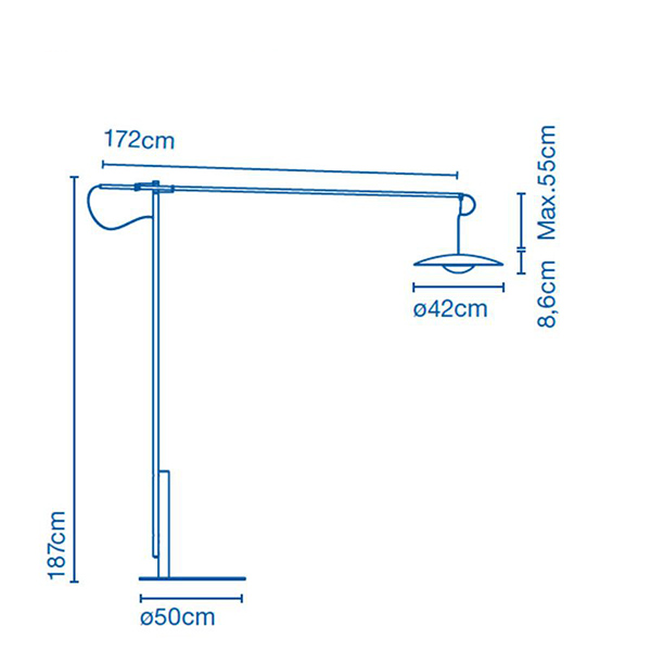 - Габаритные размерыд. 172 / в. 187 / Ø плафона 42 / Ø основания 50 см.