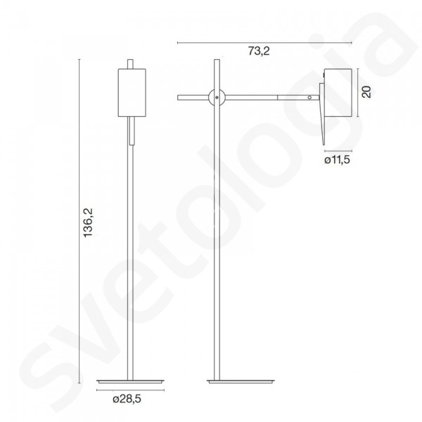 - Габаритные размерыд. 73.2 / в. 136.2 / Ø плафона 11.5 / Ø основания 28.5 см.