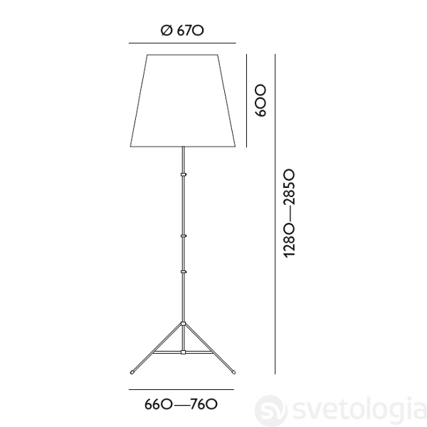 - Габаритные размерыв. 128 / в. Max. 285 / Ø плафона 67 / д. основания 66 / ш. основания 44 см.
