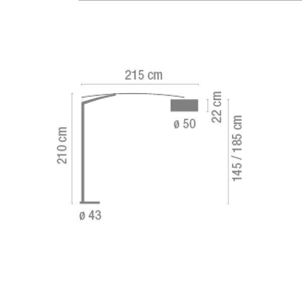 • Габаритные размерыд. 260 / в. 210 / Ø плафона 50 / Ø основания 43 см.