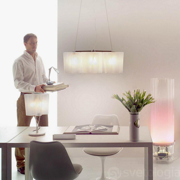 Настольный светильник работы дизайнеров Michele de Lucchi ( Микелле ле Лукки) и Gerhard Reichert (Герхарт Райхарт). Плафон Logico сделан из выдувного стекла с эффектом шелка. Такой материал придает ему неповторимый шарм. Он одинаково выгодно смотрится как во включенном, так и выключенном состоянии. Арматура светильника изготовлена из металла, окрашенного белый цвет. Коллекция включает в себя настольные, подвесные, потолочные и настенные подели разных размеров и конфигураций.