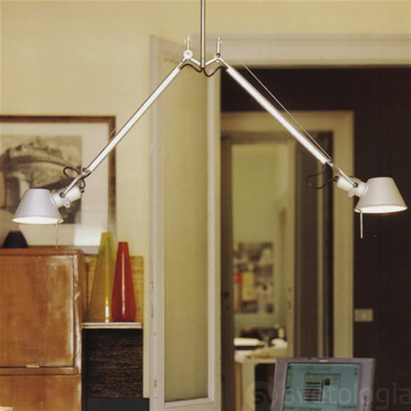 Tolomeo, пожалуй, одна из самых титулованных коллекций светильников. Эта коллекция была создана в 1987 году и удостоена многочисленных наград за дизайн и функциональность. Подвесной светильник имеет два поворотных плеча,фиксируемых с помощью запатентованного наружного механизма фиксации. Арматура и плафоны выполнены из алюминия.