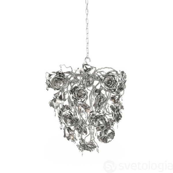 Женственная и в то же время индустриальная люстра в мастерском исполнении Brand Van Egmond, дизайнеров, которые не нуждаются в рекламе. Стальные стебли и бутоны роз цвета никеля сделаны и отполированы вручную, а источники света искусно вплетены в композицию этой световой скульптуры. Соответствуя своему фирменному почерку, Brand Van Egmond украсили Love you love you not кристаллами.