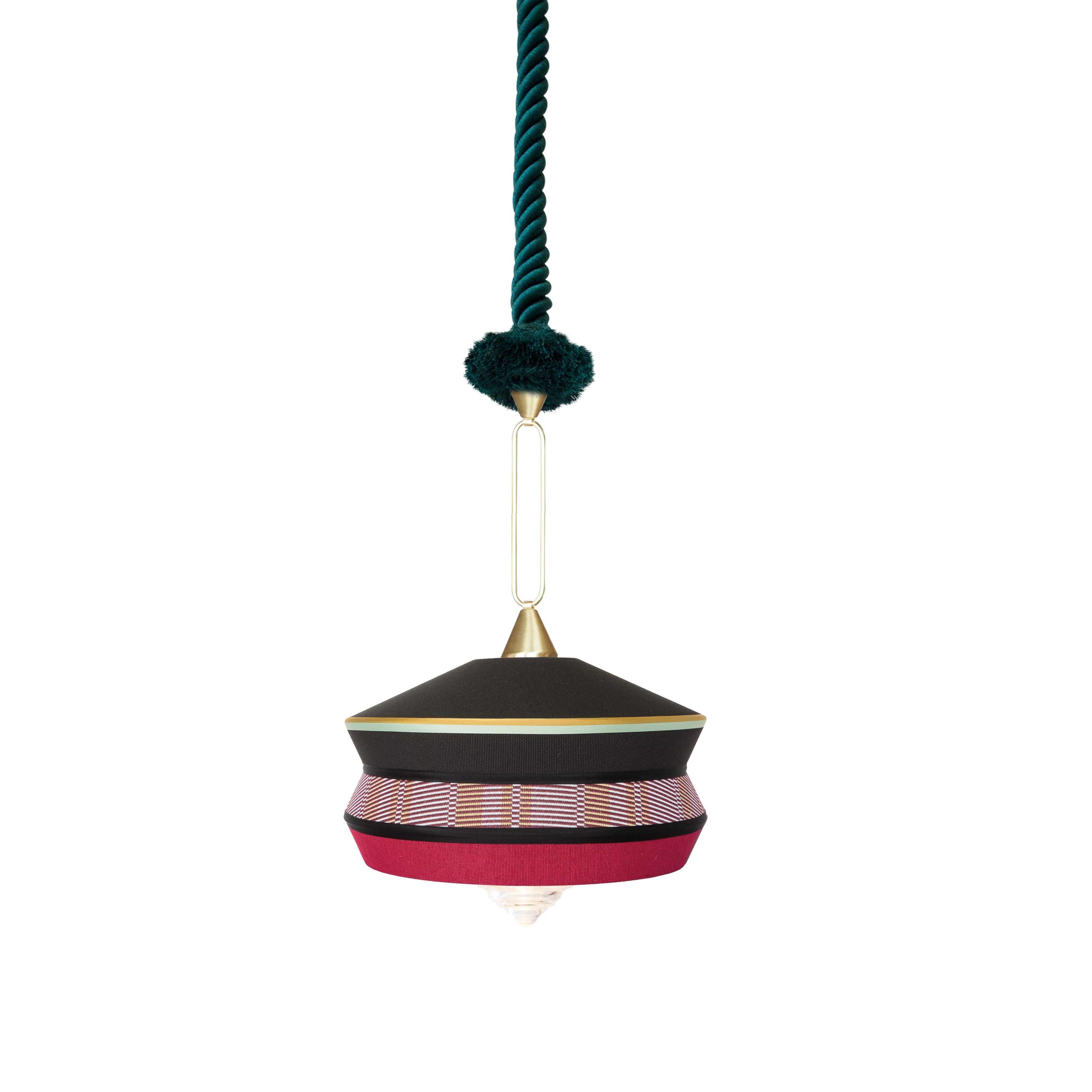 Calypso - это коллекция подвесных светильников, вдохновленная периодом арт-деко, где с ткани с черными и белыми геометрическими узорами сочетаются с яркими цветами южноамериканской и тропической культуры, обеспечивая оригинальный результат. Подвес оплетен шелковой нитью зеленого цвета. Светильники в коллекции представлены в разных формах и расцветках.