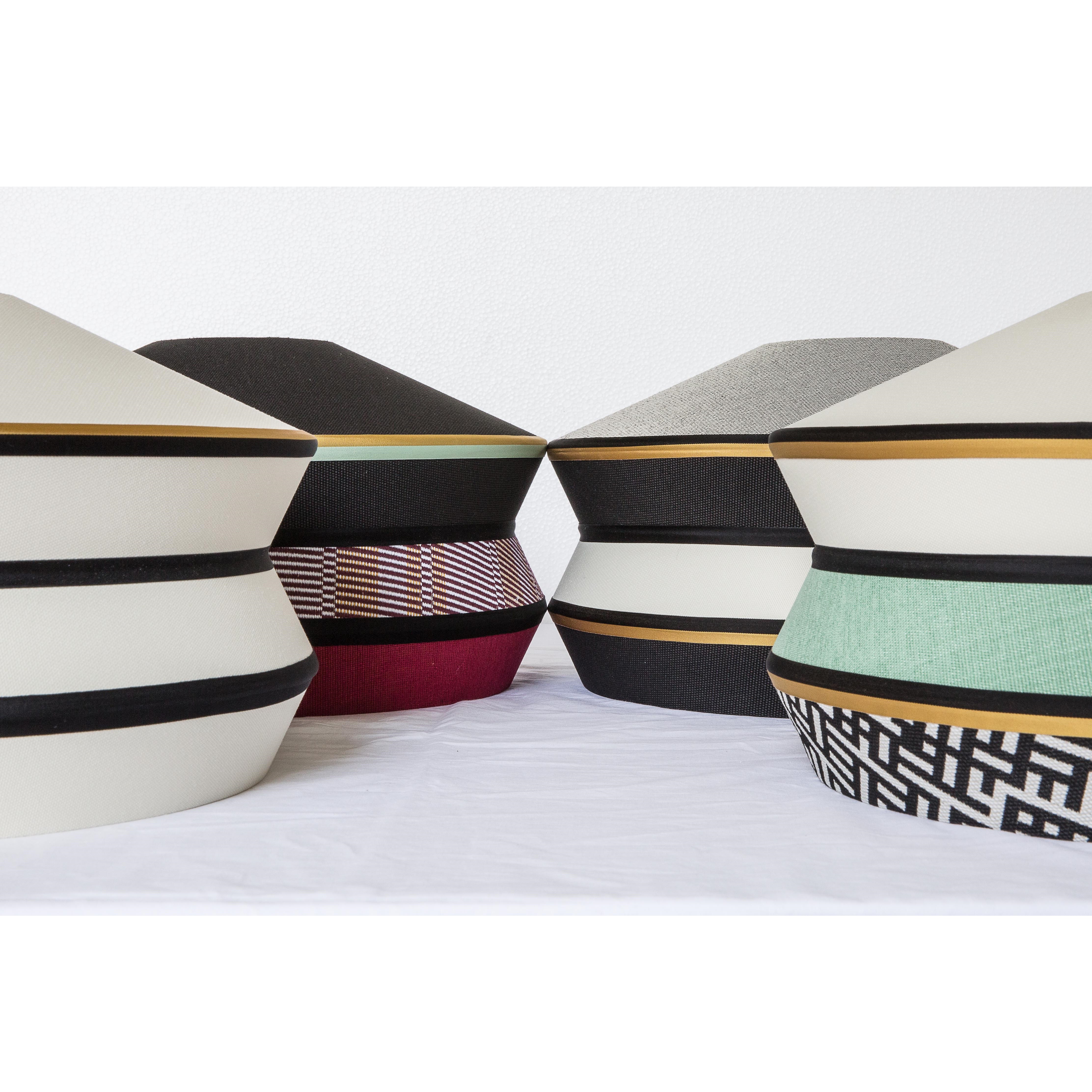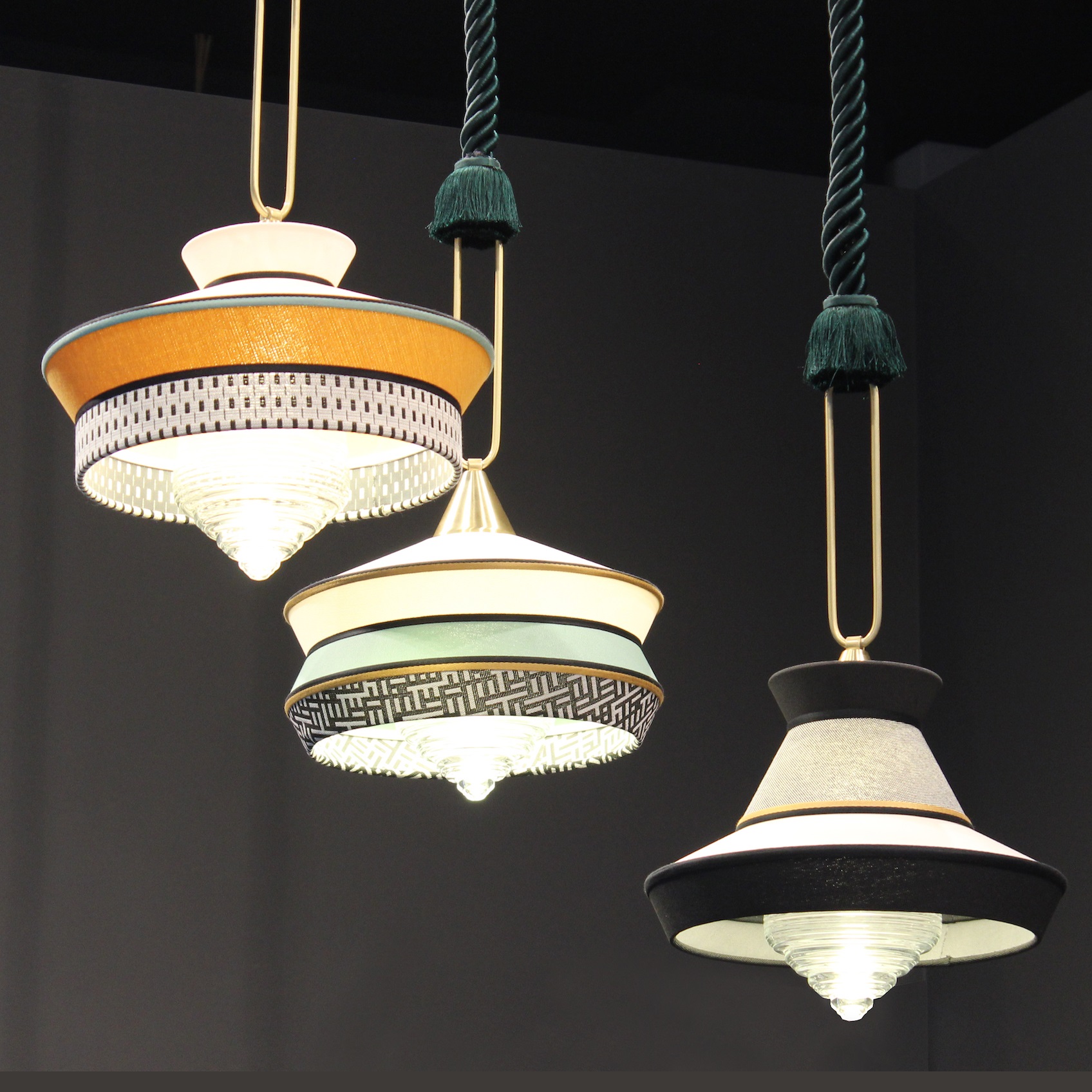Calypso - это коллекция подвесных светильников, вдохновленная периодом арт-деко, где с ткани с черными и белыми геометрическими узорами сочетаются с яркими цветами южноамериканской и тропической культуры, обеспечивая оригинальный результат. Подвес оплетен шелковой нитью зеленого цвета. Светильники в коллекции представлены в разных формах и расцветках.
