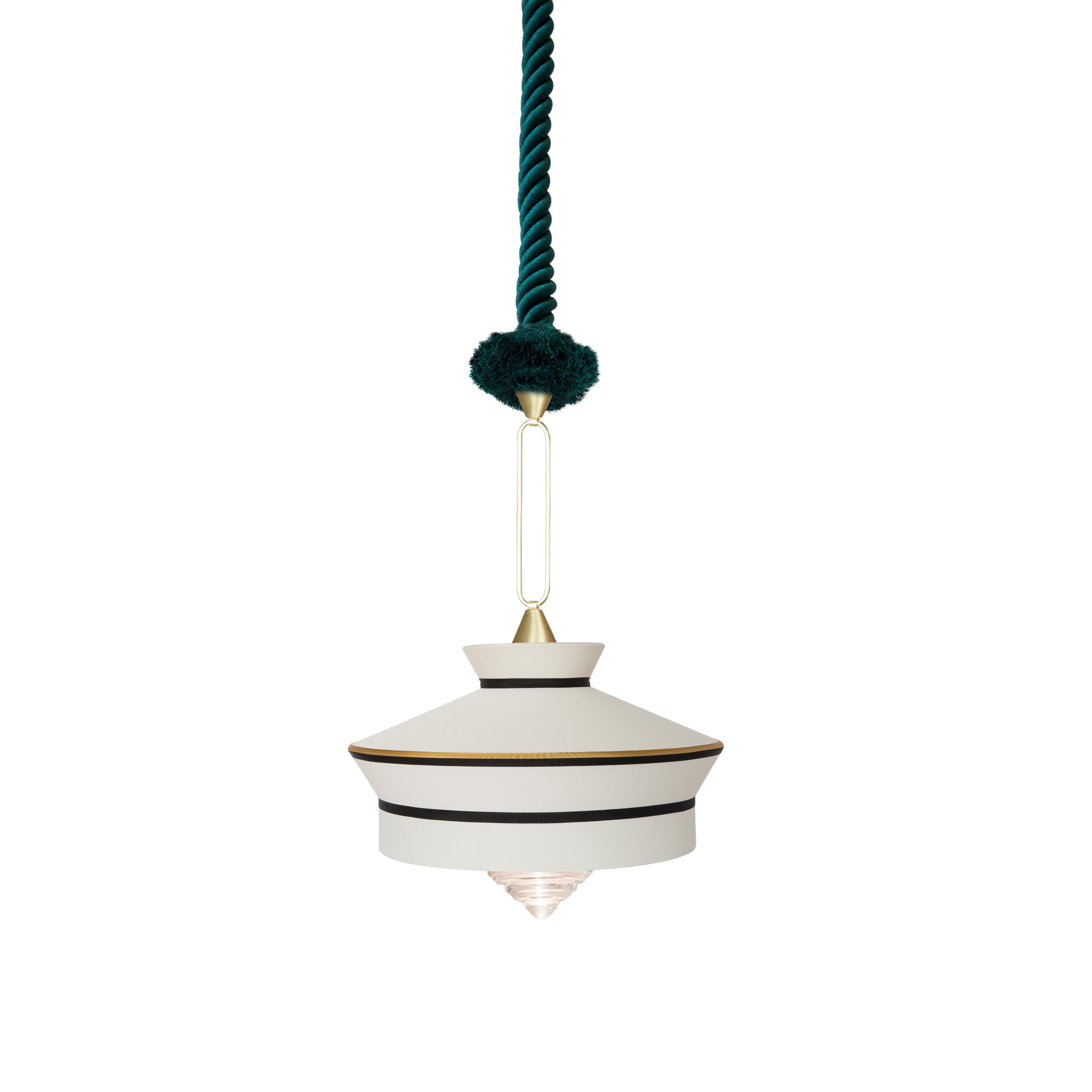 Calypso - это коллекция подвесных светильников, вдохновленная периодом арт-деко, где с ткани с черными и белыми геометрическими узорами сочетаются с яркими цветами южноамериканской и тропической культуры, обеспечивая оригинальный результат. Подвес оплетен шелковой нитью зеленого цвета. Светильники в коллекции представлены в разных формах и расцветках.