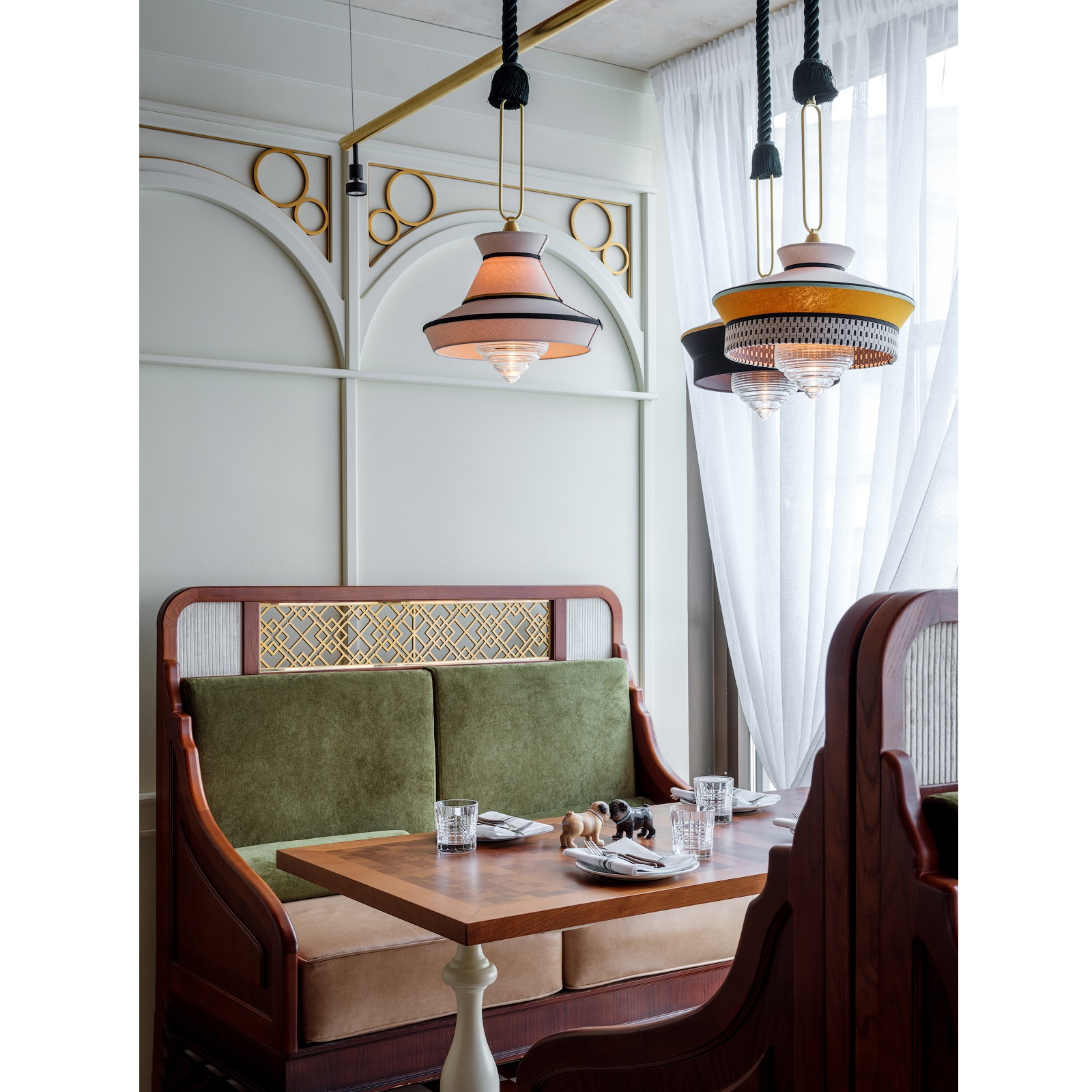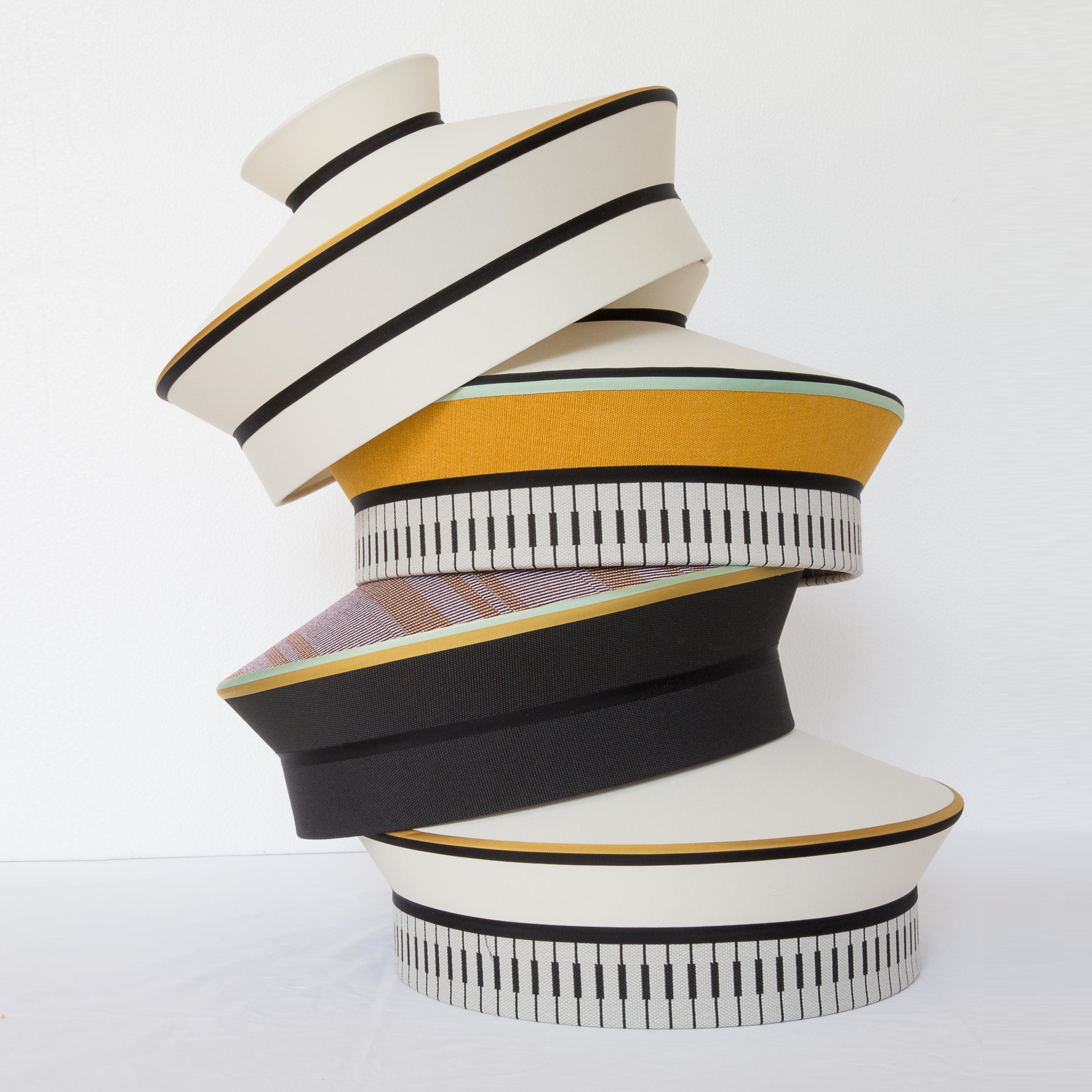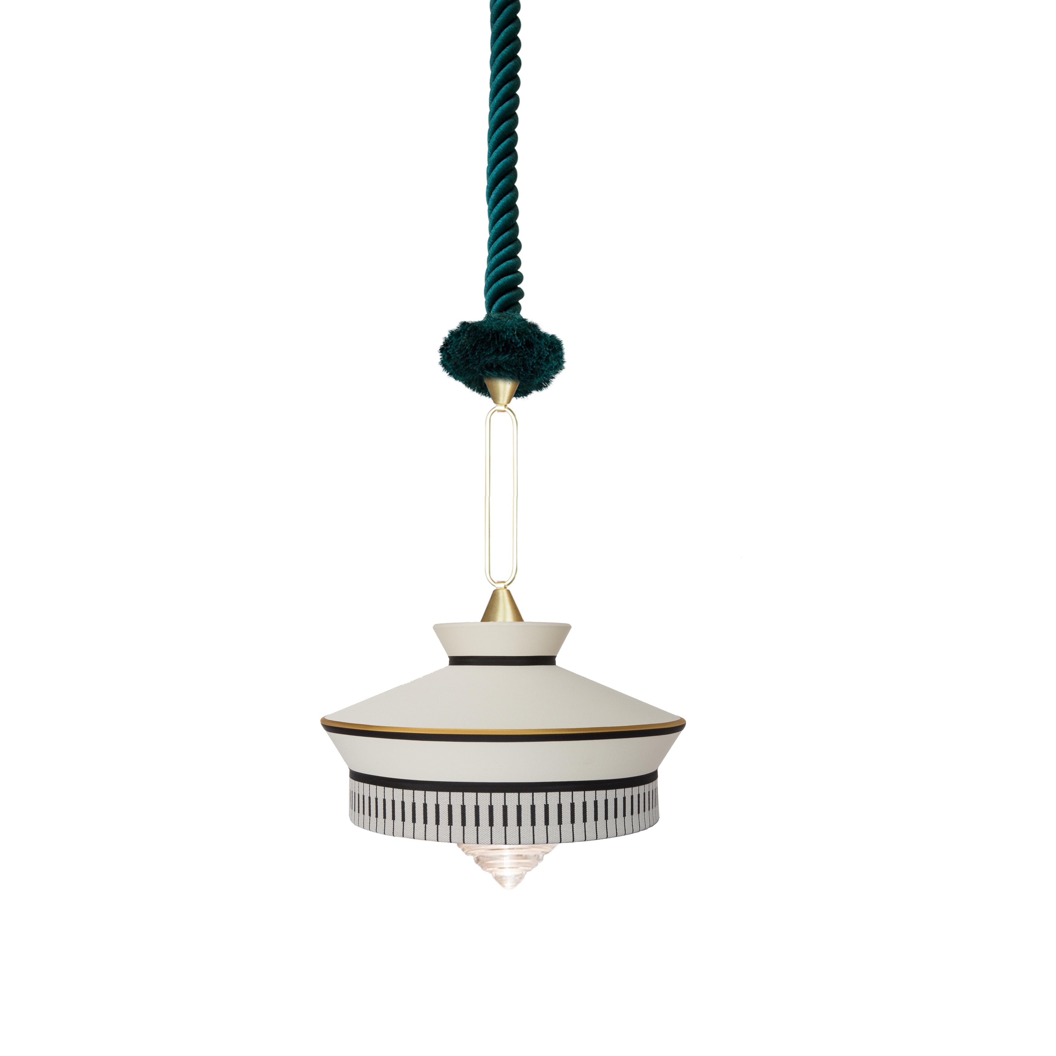 Calypso - это коллекция подвесных светильников, вдохновленная периодом арт-деко, где с ткани с черными и белыми геометрическими узорами сочетаются с яркими цветами южноамериканской и тропической культуры, обеспечивая оригинальный результат. Подвес оплетен шелковой нитью зеленого цвета. Светильники в коллекции представлены в разных формах и расцветках.