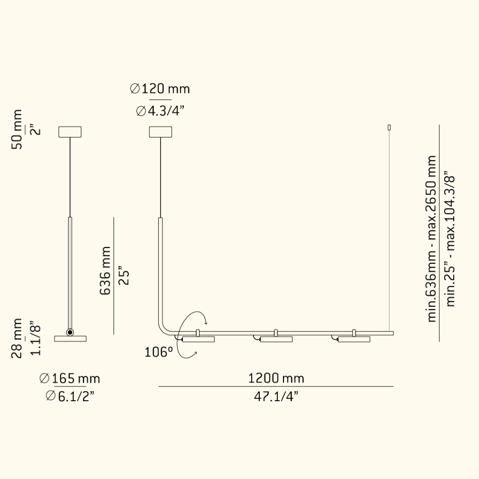 • Min длина светильника с подвесом63.6 см.