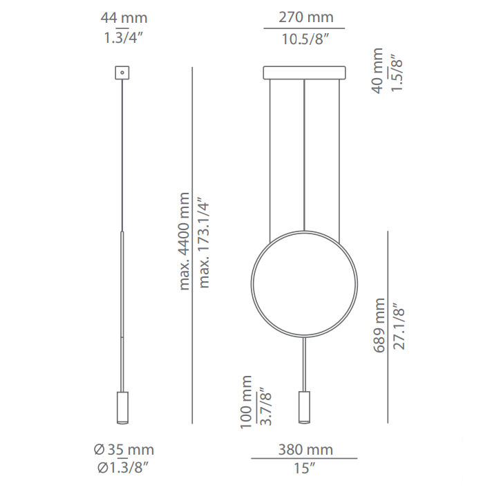 • Длина светильника с подвесом440 см.