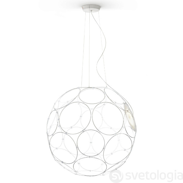Подвесной светильник от итальянской фабрики Fabbian с названием, которое переводится с итальянского как «круг». Светильник в форме сферы, очерчивающей собой пространство создает объемное свечение. Идею создателей удалось воплотить с помощью 32-х тонких металлических колец разного диаметра, скрепленных между собой. Источники света можно расположить в любом месте этой конструкции, в зависимости от Ваших пожеланий . Giro поставляется в миниатюрной упаковке и прост в сборке и монтаже.