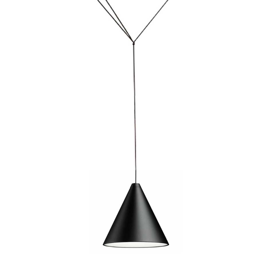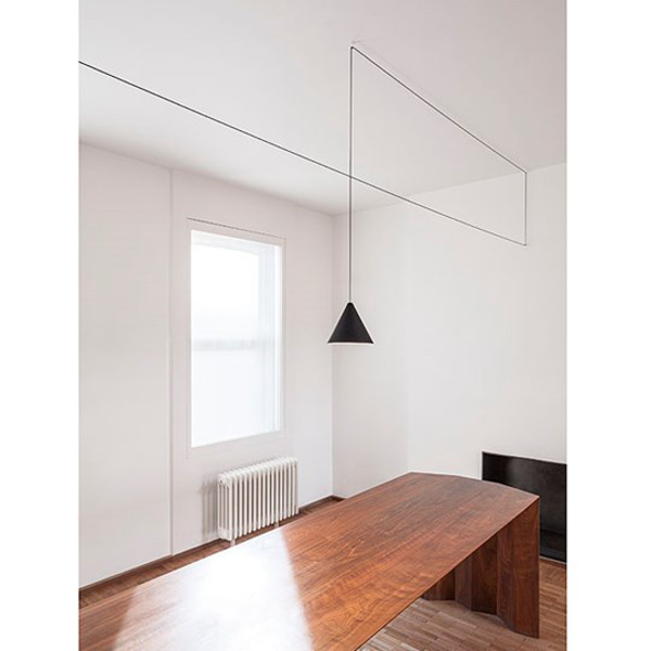 Необычные подвесные светильники от дизайнера Michael Anastassiades c плафонами конической или сферической формы отражают новаторский подход к оформлению пространства. Сам художник говорит, что вдохновился несколькими вещами: линиями электрических проводов, которые образуют бесконечные параллельные прямые, когда смотришь на них из окна мчащегося поезда и гирляндами, которыми украшают площади во время праздников, как бы очерчивая освещенное пространство и приглашая принять участие в действе.