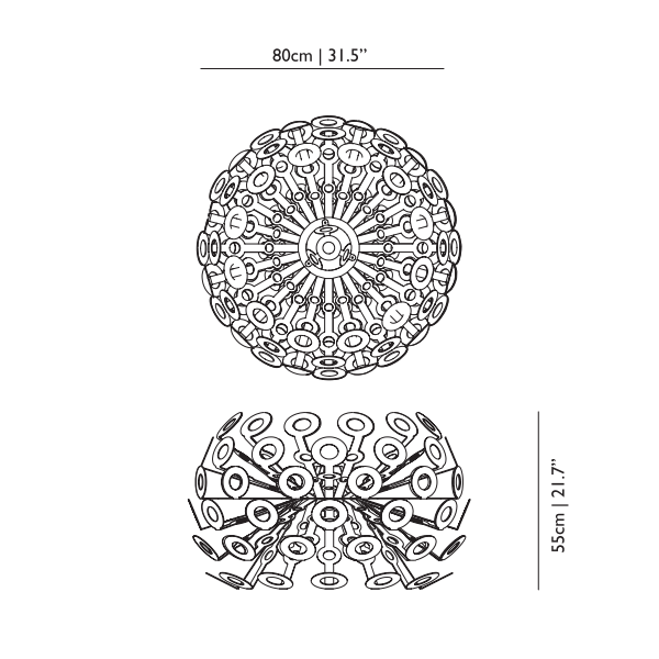 Dandelion переводится как «одуванчик», а светильник под этим именем воспроизводит то, что собственно происходит, когда подуешь на этот созревший цветок. Визуально Dandelion передает взрывное чувство энергии в движении, идущей от центра во всех направлениях. Светильник с таким зарядом энергии точно не допустит рутину в вашу повседневную жизнь и будет каждый день поднимать настроение своим забавным и бодрым дизайном.