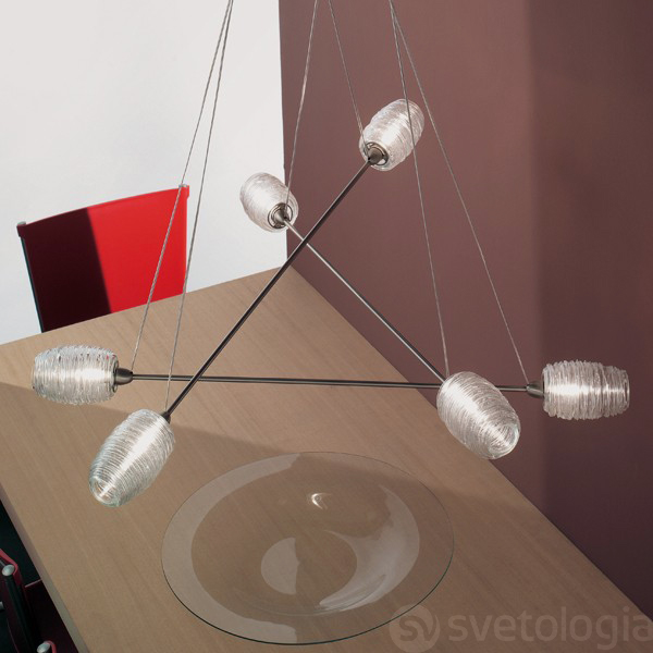 Vistosi можно без шуток обставить весь дом: настолько они разнообразны. Настенная модель напоминает два скрещенных факела, а подвесная похожа на летающие фонарики. Плафоны у этих примечательных ламп выполнены по особой технике из итальянского выдувного стекла, цветовые варианты – от белого и кристально-прозрачного до черного и топазового. А еще их можно собирать в кластер!